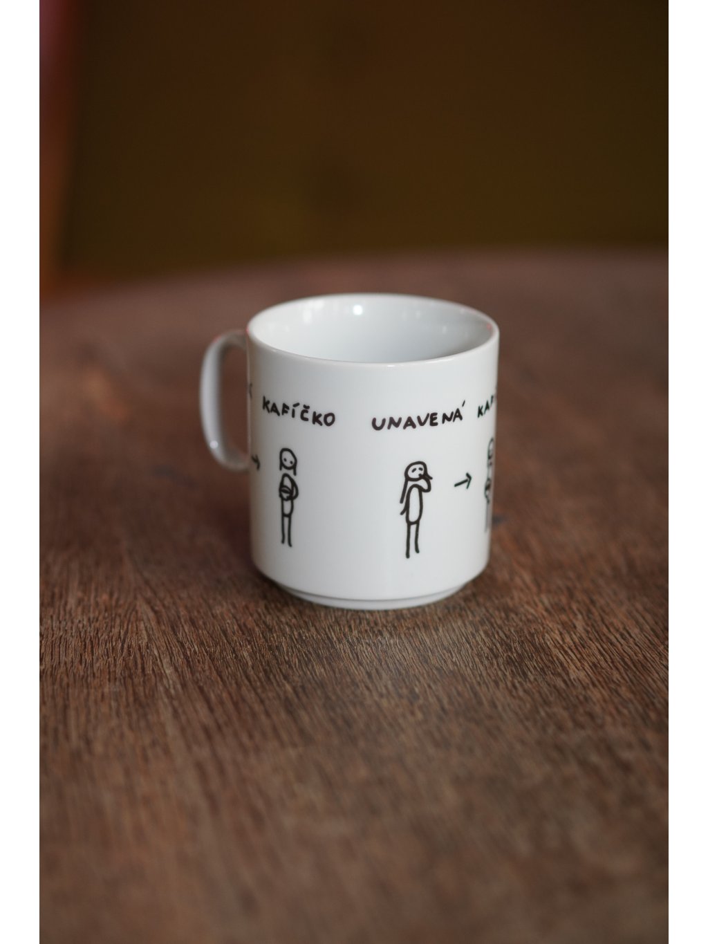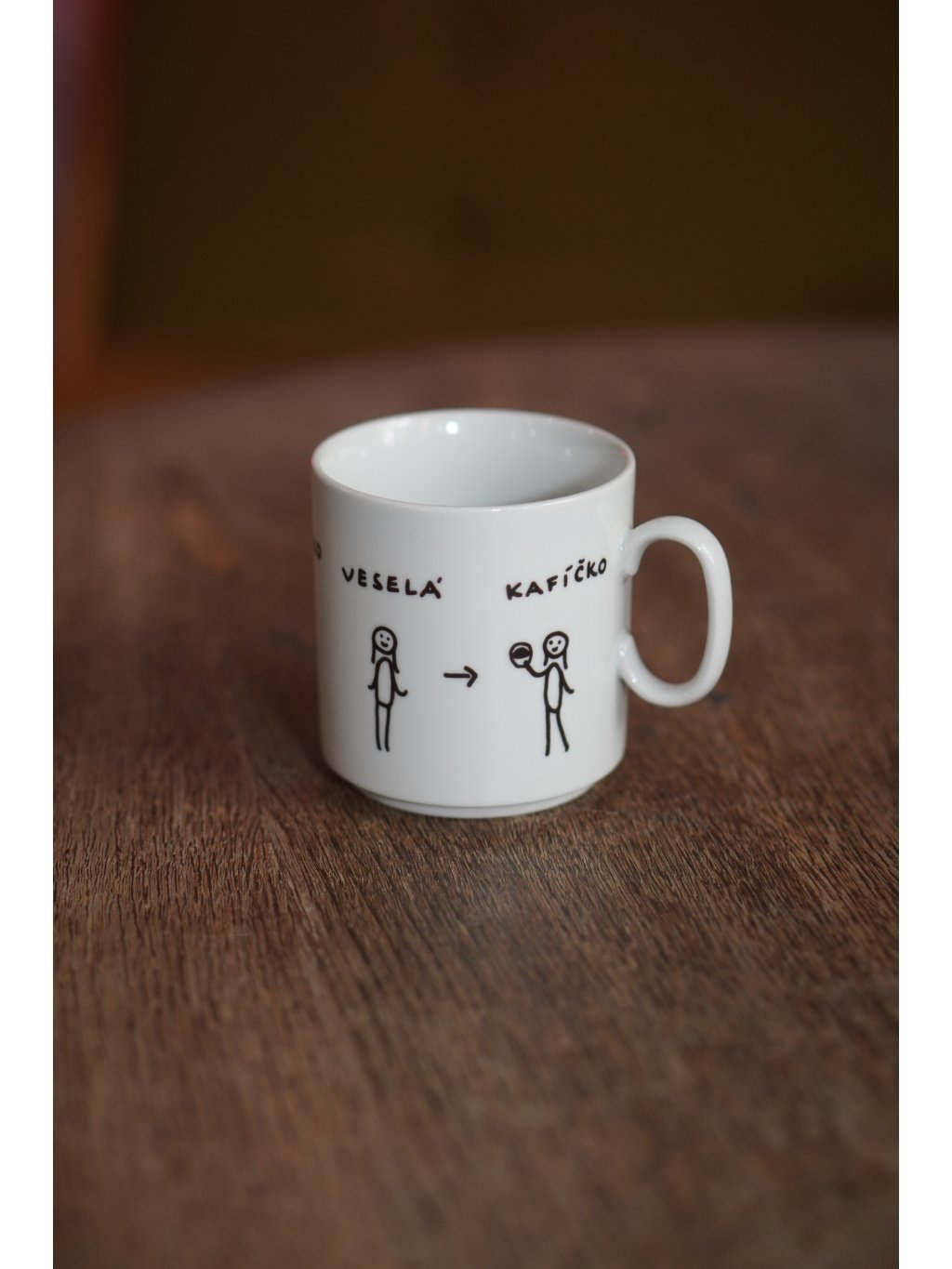 Hrnek Smutná veselá kafíčko. Je vyroben z klasického porcelánu v ČR a ručně dekorován technikou s výpalem při vysoké teplotě. Můžete ho díky tomu bez obav dát do myčky nebo mikrovlnky, určitě to zvládne. Vzhledem k ruční práci se umístění dekoru může mírně lišit.